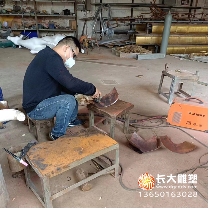 葫蘆鍛銅雕塑拼裝焊接中,表面作舊效果