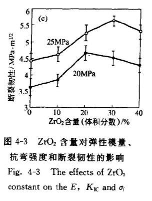 再者,由于Al2O的熱膨脹系數約為8×10-·℃-1,小于ZrO熱膨脹系數,所以當AIO)在ZrO2基體中分布時,Al2O)晶粒處于壓應力狀態,AlO與ZrO2在晶界處結合良好,具有良好的晶界強度,使裂紋不易在AlO與ZrO2晶界形成,因此,Al2O的加人使ZO2陶饒的晶界得到化,ZrO2相變能提高,從而使ZrO2陶瓷的抗彎強度、斷裂韌性得到提高。