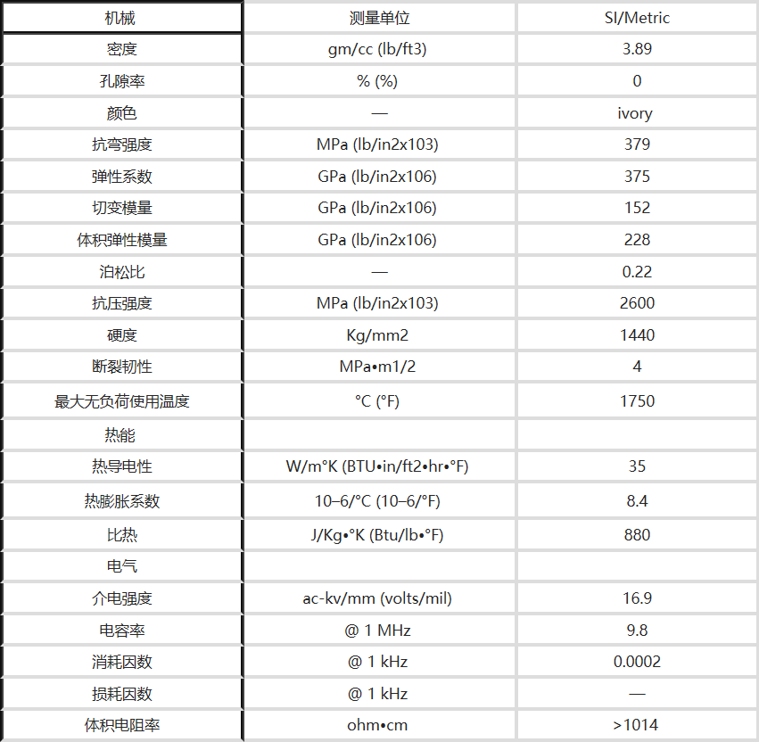 995氧化鋁的機(jī)械性能可以說是不同純度氧化鋁陶瓷中機(jī)械性能最高的,它經(jīng)常被用于一些高科技行業(yè),下面看科眾陶瓷廠給大家介紹下它的機(jī)械性能參數(shù)吧。
